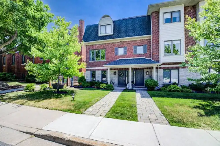 This is it! Nestled on a quiet street in the heart of Waterdown just walking distance to shops, restaurants & all the amenities of downtown Waterdown. Absolutely stunning and upgraded to the brim, this executive 2 plus 1-bedroom, 4-bathroom townhome with a bonus office area features the rare double car garage with additional parking for 2 cars on the parking pad for a total of 4 spots. Soaring 10-foot ceilings on the entry level featuring a 3rd bed or office area, this level boasts a two-piece bathroom as well as direct interior access to the double garage. The main level features a custom kitchen with stainless steel appliances including a 2020 GE profile gas range with grill, along with granite countertops, double sink, a sleek tile backsplash, under mount lighting, and two elegant pendant lights. The breakfast area opens to the impressive 20 ft x 12 ft deck with privacy fence and full-size remote-controlled awning. Please note the convenient gas line for outdoor grilling. The dining room features hardwood flooring and coffered ceiling and is open to the great room that highlights a Regency City Series gas fireplace (2021) adds warmth and style as well as a bright window overlooking the front landscaped yard. Please note that this level boasts 9 ft ceilings and offers a convenient 2 pc powder room. The upper-level features 2 generous sized bedrooms as well as the main four-piece bathroom. The primary bedroom offers a full walkin closet as well as a professionally renovated 3-piece bathroom. The hall and bonus office area has been upgraded with hardwood flooring and an attractive wrought iron railing for the staircase. Additional upgrades include a Ecobee smart thermostat, on-demand tankless hot water heater, and fully owned HVAC systems. Stylish LED lighting throughout, including pot lights and designer fixtures, enhances every room with refined ambiance. Located in a quiet, well-managed enclave, this turnkey home blends elegant design with comfort.