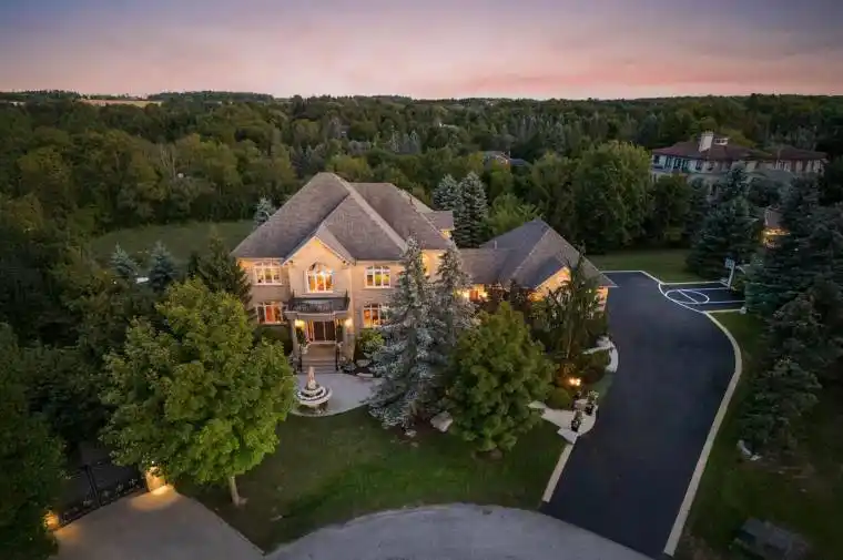 Welcome To This Exquisite Estate In The Prestigious Laskay Community Of King City, Situated On A Stunning One-Acre Premium Lot End Of A Private Cul-De-Sac. This Custom-Built Home Offers 4 Bedrooms, 5 Bathrooms, Over 7,000 Sq. Ft. Of Beautifully Finished Living Space Across Main And Lower Levels. Designed For Elegance, Comfort, And Privacy, Featuring A Resort-Style Backyard Surrounded By Mature Trees And Lush Landscaping, Creating A Tranquil Retreat Perfect For Relaxing Or Entertaining Under The Stars. A Grand Entrance Welcomes You With A Prominent Water Fountain & 100+ Ft Driveway. Customizable Gemstone Lighting Enhances The Exterior After Dusk. Inside, A Soaring 24-Ft Foyer And Modern Circular Staircase Impress. The Main Level Showcases A Spacious Layout W/ Stone & Hardwood Floors, Large Windows For Natural Light. The Chefs Kitchen Includes Granite Counters, Custom Cabinetry, And Premium Appliances Combined With A Walkout Balcony With Gas BBQ Overlooking The Private Backyard. Open To Kitchen Is A Cozy Family Room With Gas Fireplace. The Hall Connects A Large Laundry Room And A 3-Car Garage With 12-Ft Ceilings Including Car Lift. The Lower Level Is An Entertainers Dream With An Open Layout, Full Kitchen W/ Island, Spacious Living Area, Private Salon, And Home Theatre Featuring 12 Recliners And 7-Speaker Surround Sound. Walkout Access Leads To The Backyard Retreat With Multiple Seating Areas, A 20 X 40 Saltwater Pool, Remote-Controlled Waterfall & Lighting, Pool Cabana With Bar, Shutters, & Outdoor Shower. Upstairs, The Grand Landing Opens To A Luxurious Primary Suite With Fireplace, Dual Walk-In Closets W/ Custom Built-Ins, Spa-Inspired Ensuite With Jacuzzi, Oversized Shower, And Vaulted Ceiling. Prime Location Minutes From Highway 400, Plenty Of Space On Property To Add More Garages Or Increase Home’s Square Footage If Desired.