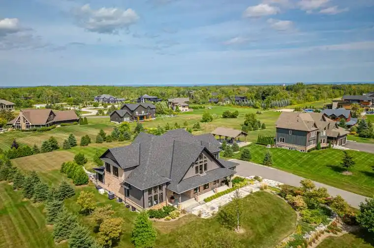 This is it! Get settled before ski season. Welcome to 4 Meadowlark Way, a rare offering in one of the area’s most exclusive communities of just 44 estate lots, minutes from Osler Bluff Ski Club, Blue Mountain Resort, and Downtown Collingwood. Set on a private 1-acre property, this Windrose Estates custom-built home offers over 6,400 sq ft of finished space. The gourmet kitchen features high-end appliances, a servery, and a butler’s pantry with a wet bar, ideal for entertaining. Don’t miss the glassed-in wine room! The primary suite is a true retreat with its own entry hall, office/laundry room, walk-in closet, and spa-like ensuite. With 5 bedrooms (including one on the main level) and 6 bathrooms, there’s plenty of room for family and guests. The basement is well-suited for a nanny suite or multigenerational living. Additional features include an oversized triple-car garage, spacious mudroom, and abundant storage for all your gear. The landscaped grounds showcase flagstone walkways and patios, composite decks, armour stone with water features, and space for a future pool framed by mature evergreens for year-round privacy. The community also offers shared green space with trails and a park. Enjoy escarpment views, ski hill lights, and Blue Mountain fireworks right from your backyard. Creative financing considered. The perfect year-round retreat or full-time residence! Hurry and get in before the snow flies!