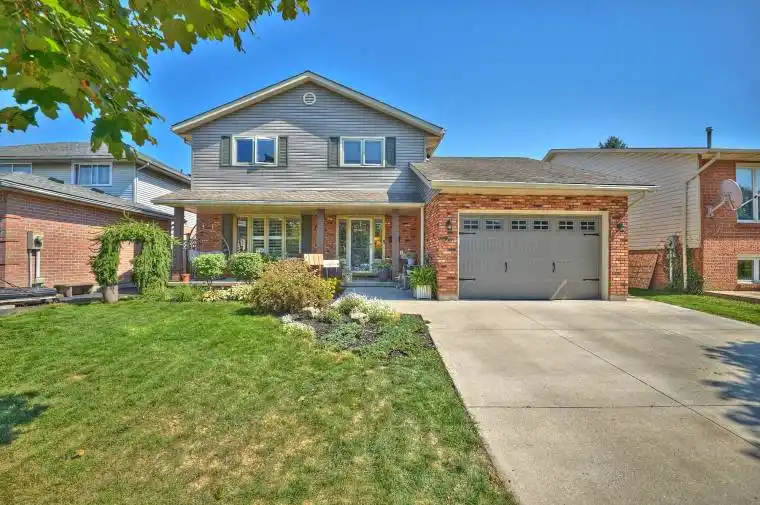 Welcome to this beautifully maintained, updated 2-storey home, offering fantastic curb appeal with its classic brick façade, covered front porch, and manicured landscaping. Step into the backyard oasis where entertaining and relaxation take centre stage. The expansive covered patio features a cozy seating area with a fire table and mounted TV, perfect for outdoor gatherings. A hot tub, newer above-ground pool with surrounding deck, and charming tiki-style bar create a true resort-like atmosphere right at home. Inside, an inviting, bright interior with new windows throughout features a spacious foyer, updated flooring, and a stunning kitchen with custom cabinetry, quartz counters, stainless steel appliances, and a large island. The dining area offers patio doors to the covered patio and flows seamlessly into a cozy living area anchored by a brick accented gas fireplace. This main-floor also features a separate large room perfect for a dining room, 4th bedroom, office, or whatever your needs desire. You will also find a conveniently located laundry room with custom cabinetry, and a 2 pc bathroom to finish off this lovely main floor. Upstairs has 3 generous sized bedrooms and 2 bathrooms. The primary suite provides a true retreat with room for a king bed and stylish décor, featuring a walk-in closet and ensuite, while the additional bedrooms add functionality and plenty of space. The basement is an entertainers dream and cozy family area, featuring a spacious rec room with a barn board accent wall, fireplace, bar, and room for family fun. An additional partially finished area is ready for your finishing touches. This property is located in the sought after Vansickle Rd area of St. Catharines and seamlessly blends comfort, style, and functionality, making it the perfect home for both everyday living and hosting family and friends, close to schools shopping and more.