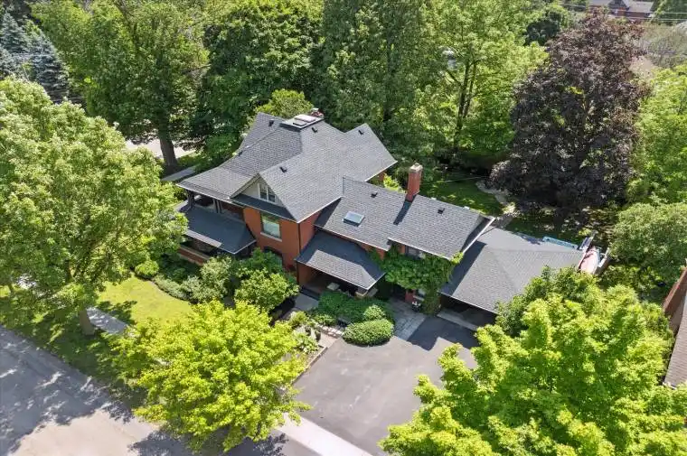 Escape to Elora and discover one of the village’s most iconic homes. Built by the town’s original mill owner around 1900, this nearly 3,500 sq ft heritage home blends timeless character with modern comfort – just steps from Downtown. With soaring ceilings, oversized principal rooms, and large windows, this home is flooded with natural light and an incredible sense of space. Solid hardwood floors, stained glass accents, and beautiful pocket doors highlight the craftsmanship of a bygone era, thoughtfully preserved throughout. The renovated kitchen features stone counters, premium finishes, and a generous island that flows effortlessly into both the formal and informal living areas. Upstairs, the timeless and luxurious primary suite offers a true retreat, complete with a stunning ensuite bathroom and a massive walk-in closet/dressing room. Two additional generous bedrooms offer comfort and privacy and as an added bonus – a third story loft adds even more space for guests, work, or play. Outside, imagine yourself enjoying a cup of tea on the wraparound front porch, perfect for peaceful mornings and neighbourly chats. The pool-sized backyard is beautifully landscaped with mature trees (one with a swing!), hardscaping, firepit, two decks, and a hot tub for year-round enjoyment. Deep historical roots, unbeatable curb appeal, and a walkable location just beyond the tourist path, this is a rare opportunity to own a piece of Elora’s living history.