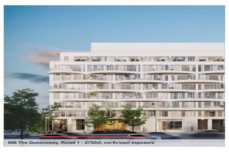 FOR LEASE PRIME COMMERCIAL SPACE IN REINA CONDOS, ETOBICOKE. Approx. 1000 sq ft. Welcome to Reina Commercial Space, a modern and uniquely designed boutique building in the heart of Etobicoke. This brand-new commercial unit offers an open-concept layout with floor-to-ceiling windows, allowing for an abundance of natural light and a sleek, contemporary feel. With ceiling heights of up to 12 feet, the space provides an airy, spacious environment perfect for a variety of business uses. Located just three minutes from the QEW, this high-visibility location on The Queensway provides excellent accessibility for businesses looking to establish or expand in a thriving area. The unit is expected to be available around August 1st, upon building registration. Ample parking around the building, plus one private parking spot available for rent.5-12 year Lease term. This is a fantastic opportunity to lease a premium space in one of Etobicoke’s most exciting new developments. Don’t miss out secure your spot today!