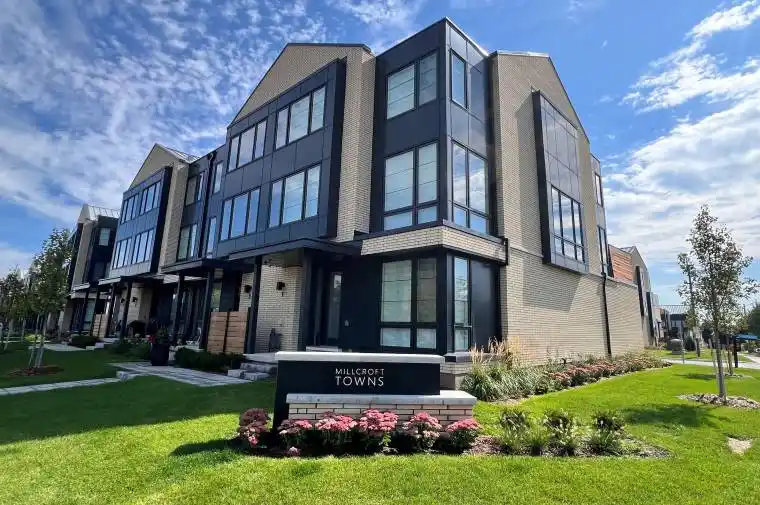 PRESENTING 2273 TURNBERRY ROAD, #1 – AN EXECUTIVE END-UNIT TOWNHOME IN MILLCROFT! Nestled in an exclusive enclave, this luxury residence delivers refined living in one of Burlington’s most prestigious communities – renowned for its top-ranked schools, Millcroft Golf and Country Club, vibrant shopping and dining, and convenient highway access. Crafted by Branthaven Homes, the sought-after Knightsbridge model offers over 2,300 square feet of upscale living space (including 270 square feet in the finished basement) and more than $60,000 in premium upgrades. Extended-height windows bathe the interior in natural light, enhancing its bright and airy ambiance. The main level hosts a private guest bedroom with a four-piece ensuite, ideal for extended family or overnight visitors. The open concept second level, with 9′ ceilings, was designed for entertaining, featuring an expansive living and dining area alongside a chef-inspired kitchen with quartz countertops, premium stainless steel appliances, a large island, and French doors opening onto the terrace. Perfect for outdoor living, the partially covered terrace offers a gas barbecue hook-up and plenty of room for dining and relaxation. On the third level, retreat to the oversized primary bedroom with a three-piece ensuite, complemented by two additional bedrooms, a four-piece main bathroom, and a conveniently located laundry room. Additional highlights include prefinished oak engineered hardwood flooring, custom high-quality Hunter Douglas window blinds, 8′ interior doors, a spacious recreation room and abundant storage in the basement, and inside access to the oversized two-car garage. Situated on the premier lot of the subdivision, this townhome boasts desirable south-west exposure and panoramic views of the Niagara Escarpment. A rare opportunity to enjoy the perfect balance of luxury, comfort, and lifestyle in Millcroft! (some images contain virtual staging)
