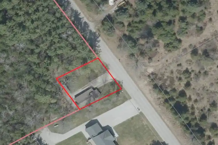 Level building lot on country road approximately 10 minute drive to Orillia. Opportunity exists to build on footprint of existing building which has little to no value. Nicely treed lot on paved road.