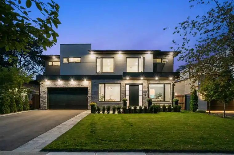 This brand-new custom estate unfolds across more than 4,600 sq ft of meticulously finished living space on a rare 60-ft ravine lot with a gently flowing creek. Ten-foot ceilings and oversized windows flood the house with natural light. White oak hardwood flows seamlessly through main areas, while heated Versace porcelain tile underfoot in all baths and the mudroom transforms daily routines into spa-like indulgences. At its heart, a bespoke chefs kitchen clad in solid walnut-paneled walls features full-extension pull-out storage, built-in Dacor refrigerator and wall oven, a side-run induction cooktop, and lustrous quartz counters. In the adjacent family room, a electric fireplace clad in floor-to-ceiling artisan stone creates an inviting focal point for lavish gatherings. Descend to the walk-up lower level to discover a secondary lounge anchored by a gas fireplace and a built-in wet bar which includes a Hisense fridge ideal for casual entertaining or home-theater nights. Engineered on 2X6 exterior walls with high-performance spray-foam insulation, this residence delivers superior thermal efficiency, acoustic privacy, and unwavering comfort. Pre-wiring for smart-home integration, security cameras, high-speed data, and high-efficiency HVAC systems ensures modern convenience. Completing this turnkey offering is a big two-car garage with epoxy-coated floors, built-in shelving, and remote-control access to a mudroom with bench seating, cubbies, and a powder room. Outside, a covered patio supported by massive white oak posts and accented by exterior pot-lights sets a stage for year-round al fresco dining against verdant ravine vistas. Situated in Oakville’s coveted south end, you’re mere minutes from top-ranked schools, boutique shopping, gourmet dining, and major commuter routes. 1509 Pembroke Drive exemplifies Oakville luxury.