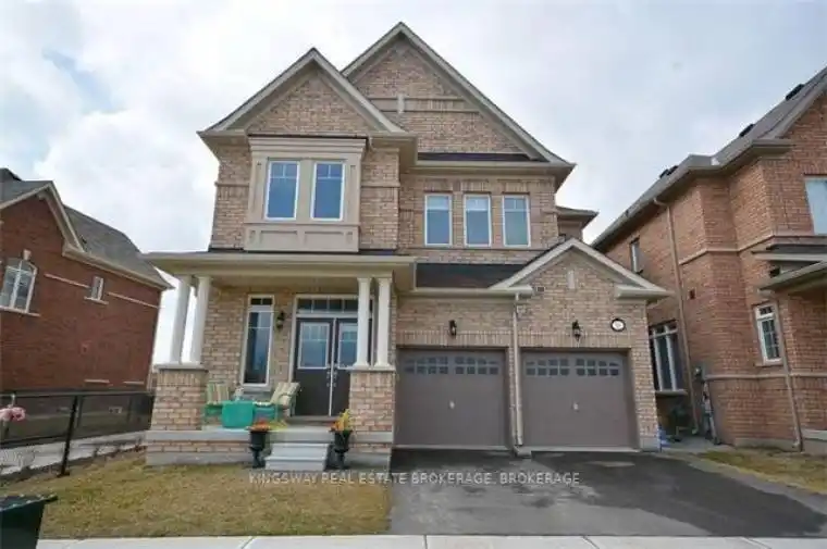 Absolutely stunning 2672 sq. ft. home, showcasing the elegance and quality of a model home. Backing onto lush community park space, this property offers both beauty and tranquility. Impeccable upgrades include vintage-style hardwood flooring, an elegant circular staircase, crown molding, and pot lights throughout. The gourmet kitchen features granite countertops, a stylish backsplash, and luxury appliances, perfect for any chef. The open-concept layout is enhanced by soaring 9′ ceilings on both main and second floors. Upstairs, four generously sized bedrooms each feature their own ensuite bath, ensuring privacy and convenience for the whole family. The highlight continues outdoors with a spacious and unique covered porch overlooking the landscaped yard and park views- an ideal spot for entertaining or relaxing. Just the whole house freshly painted with the designer paints. A true must-see!