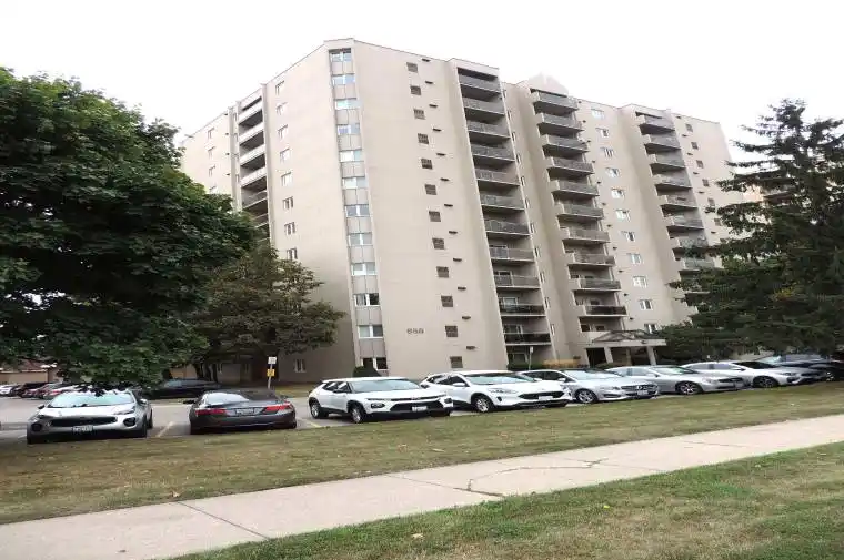 Welcome to Roseland Condominiums. Renovated and spacious, this 2-bedroom, 1-bathroom condo is move in ready and will not dissappoint! The convenient and desireable location is perfectly situated just minutes from the 401 highway and two hospitals – making this home ideal for commuters, healthcare professionals, or anyone seeking a central location. This condo features a functional open kitchen layout with large breakfast bar with seating opening up to both the living and dining room areas. Large windows throughout floods the unit with nautural light. Lots of upgrades with noteable hardwood flooring throughout the unit with marble flooring through bathroom and laundry room – making the unit carpet free. Other noteable upgrades include a newly installed kitchen backsplash and facet, newer bathroom sink & facet, newer light fixtures and door knobs, as well as the unit freshly painting throughout- including all trim. Convenient in-suite laundry and a north facing balcony with downtown views. This building features access to a full suite of amenities, including an outdoor pool, a fully equipped fitness centre, and tennis courts – perfect for unwinding after a long day. Pets are allowed. The building is wheelchair accessible with automatic door opener at both the front and side entrance doors. The building also has an audible fire alarm system, upgraded elevators, onsite management and controlled entry with a surveillance system. Lots of parking including a covered garage. Minutes to 2 grocery stores, shopping, restaurants, parks, schools and transit at the door. It’s all here!!