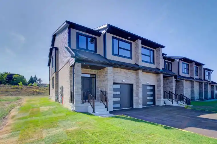 Welcome to this stunning, brand-new end-unit townhome, featuring a beautiful stone exterior and a host of modern finishes youve been searching for. Nestled in a desirable, family-friendly neighborhood, this home offers the perfect blend of style, comfort, and convenienceideal for those seeking a contemporary, low-maintenance lifestyle. Key Features: Gorgeous Stone Exterior: A sleek, elegant, low-maintenance design that provides fantastic curb appeal. Spacious Open Concept: The main floor boasts 9ft ceilings, creating a bright, airy living space perfect for entertaining and relaxing. Chef-Inspired Kitchen: Featuring elegant quartz countertops, modern cabinetry, and ample space for meal prep and socializing. 3 Generously Sized Bedrooms: Perfect for growing families, or those who need extra space for a home office or guests. Huge Primary Suite: Relax in your spacious retreat, complete with a well appointed ensuite bathroom. Convenient Upper-Level Laundry: Say goodbye to lugging laundry up and down stairs its all right where you need it. Neighborhood Highlights: Close to top-rated schools, parks, and shopping. Centrally located for a quick commute to anywhere in Kitchener, Waterloo, Cambridge and Guelph with easy access to the 401. This freehold end unit townhome with no maintenance fees is perfect for anyone seeking a modern, stylish comfortable home with plenty of space to live, work, and play. Dont miss the opportunity to make it yours!
