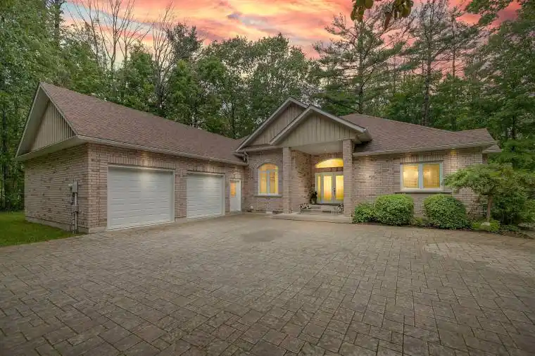 Custom-Built Bungalow on Oversized Lot in Prestigious Big Bay Point! Over 2500 sq ft. of main floor with three bedrooms and three bathrooms. Nestled at the quiet dead end of a quaint street, this exceptional property sits on a sprawling, tree-lined lot just minutes from Friday Harbour and two popular golf courses. Surrounded by nature, the mature trees and landscaped yard provide privacy and serenity, while exterior lighting adds an evening touch of elegance. Ideal for luxury buyers, builders, or multi-generational families, this home combines accessibility with opportunity. There’s potential to sever the lot for an additional 100′ parcel, making this a rare and valuable find for future development or investment. Inside, enjoy barrier-free, one-level living, complete with a garage stair lift, rear ramp to an expansive deck, and a roll-in shower perfect for families with an elderly parent or anyone needing mobility-friendly features. Main floor features 14-foot ceilings, large windows overlooking trees and a formal dining area. Modern white kitchen with gas stove, white updated appliances, and a peninsula extends to a walk-out breakfast area. A partially finished basement offers added living space, featuring a large rec room, den, cantina, and utility room, ideal for guests, hobbies, or future customization. The interlock driveway accommodates multiple vehicles, RVs, or boats. The massive two-car garage has extra space and an inside entry to the home. This turn-key retreat is the ultimate blend of comfort, location, and potential just moments from Lake Simcoe, government dock, trails, and top-tier golf. Whether you’re downsizing in style, building your dream, or investing in a coveted neighbourhood, this one has it all.