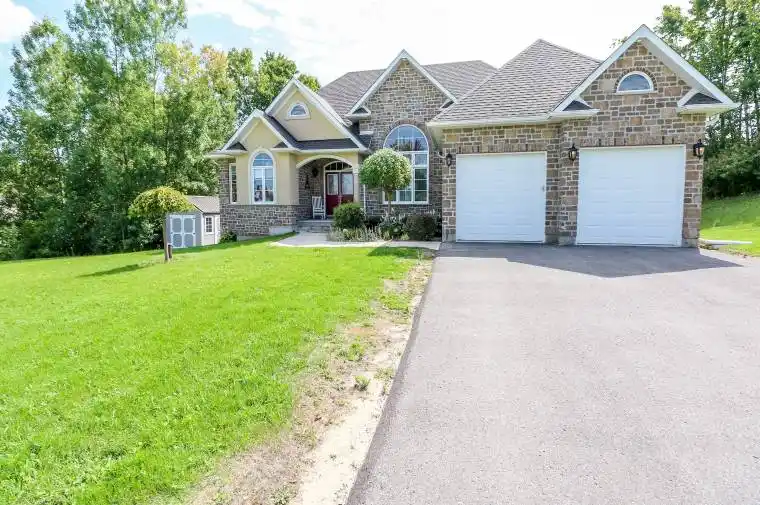 Welcome to your Paradise, an executive bungalow that blends timeless craftsmanship with the tranquility of country living. Tucked away on a private lot surrounded by mature trees and natural landscapes, this custom-built home offers a true retreat while remaining just minutes from Hwy 11 and Hwy 400 for effortless commuting.Spanning nearly 2,500 sq. ft. on the main level, this residence features soaring 9+ ft. ceilings, expansive custom windows, and a thoughtful open layout designed to maximize natural light and capture the beauty of its surroundings. The spacious Living room/family room with its warm atmosphere flows seamlessly into a gourmet eat-in kitchen and formal dining roomperfect for both intimate evenings and larger gatherings.The primary suite is a true sanctuary, complete with a spa-inspired ensuite and serene views of the property. Two additional oversized bedrooms provide comfort and flexibility for family, guests, or a home office. Main floor laundry adds convenience, while hardwood and ceramic floors enhance the homes timeless appeal.A walkout basement, bright with full-size windows, offers endless potential to create additional living spacewhether a media room, gym, or guest suite. The double car garage ensures ample storage and practicality for modern living.Set on 4.26 acres, this home strikes a balance between privacy and accessibility, surrounded by fields and peaceful green space in one of Oro-Medontes most desirable neighbourhoods.Whether you’re looking for a refined family residence or a serene escape close to the city, this home delivers unmatched comfort, elegance, and opportunity.
