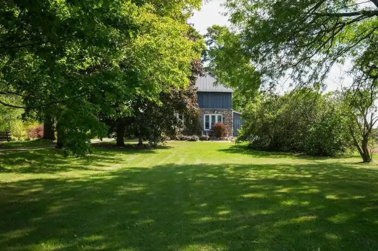 Welcome to 2473 Ronald Road a picturesque country estate nestled on over 3 acres of serene landscape. This beautifully renovated home seamlessly blends timeless charm with modern comfort, offering a lifestyle of privacy, elegance and functionality. A long, tree-lined driveway leads to a striking residence featuring a partial cobblestone facade paired with classic board and batten exterior finishes. Inside, you’re greeted by a spacious foyer and a tucked-away private office ideal for remote work or quiet study. The heart of the home is the stunning kitchen, where natural stone and exposed brick are thoughtfully combined with sleek stainless steel appliances to create a space that’s both rustic and refined. Adjacent to the kitchen, the bright and airy family room features wall-to-wall windows and direct access to the backyard, flooding the space with natural light and offering beautiful views of the property. The main level also includes a stylish 3-piece bathroom, a formal dining room designed for entertaining and a cozy living room highlighted by a wood-burning fireplace and elegant coffered ceilings. Upstairs, you’ll find three generously sized bedrooms and a beautifully updated 4-piece bathroom, offering comfort and space for the whole family. Beyond the home, this estate offers exceptional outbuildings including a large 40′ x 60′ barn at the rear of the property perfect for equipment storage or hobby use and a heated 50′ x 30′ workshop complete with a loft for additional storage, making it ideal for trades, business owners, or anyone in need of versatile space.