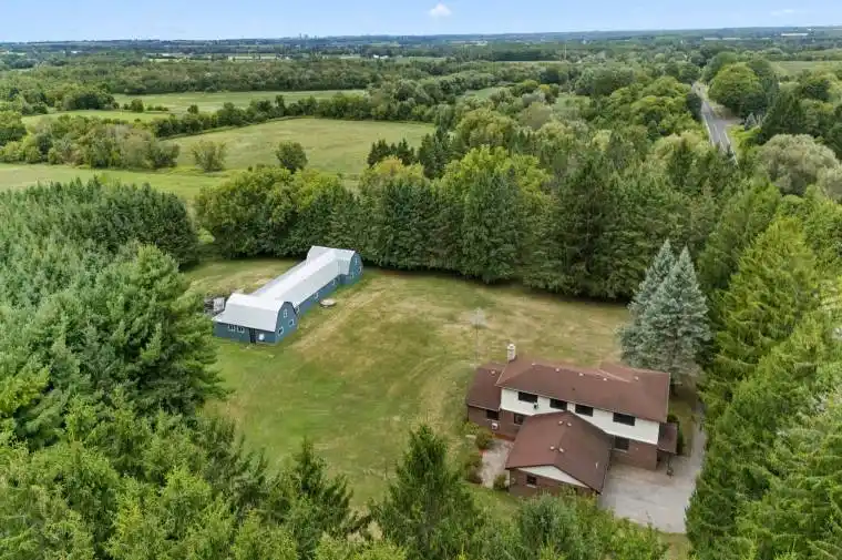 Welcome to this lovingly maintained rural retreat, proudly cared for by the original family. Nestled on over 4 private acres in Clarington, this spacious home offers nearly 3,000 sq ft of living space with 4 bedrooms and 3 bathrooms ideal for families seeking the tranquility of country living without sacrificing convenience to town amenities. Inside, you’ll find generous principal rooms, including sun-filled living and dining areas. The cozy family room features rich cherrywood flooring and a charming brick fireplace – perfect for gathering with family and friends. Upstairs, updated European-style windows and gleaming hardwood floors create a warm, inviting atmosphere throughout.The expansive primary suite includes his-and-hers closets, a private 3-piece ensuite, and a walk-out to a serene balcony – an ideal spot for morning coffee or taking in peaceful sunset views.The kitchen offers a clean, functional layout with excellent potential for a personalized renovation to suit your tastes. Step outside and enjoy the wide-open landscape, complete with mature trees for privacy, fruit trees, berry bushes, and a vegetable garden for the avid gardener.A true highlight of the property is the 100 ft x 30 ft serviced workshop/hobby barn – a versatile space perfect for work, hobbies, or extra storage.Combining privacy, space, and convenience, this rare offering captures the essence of rural living at its best. Whether you’re looking for a move-in-ready home or a canvas to customize, this Clarington gem is not to be missed!