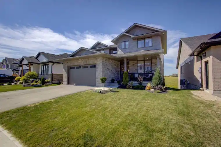Welcome to 90 Rea Drive, a show stopping residence by Keating Construction that truly raises the bar. This 4 bedroom, 4 bathroom two storey home delivers over 2,800 sq. ft. of exquisitely finished living space designed for comfort, connection, and style.The heart of the home is a luxury inspired kitchen featuring quartz countertops, a generous island, custom cabinetry, and premium stainless steel appliances . Perfectly positioned for both everyday living and effortless entertaining. The bright, open layout flows into expansive living and dining areas where oversized windows frame sweeping views of the farmland beyond. A stunning gas fireplace is the focal point for family gatherings. Enjoy the covered raised deck overlooking the farm field below for tranquil morning coffee or an evening glass of wine, no matter the weather. A thoughtfully designed mudroom with built-in storage, pantry space, and direct access to the double garage adds a layer of practical luxury, while a bonus main floor office/bedroom offers flexible space tucked away from the main living areas. Upstairs the custom layout is made for family living with no wasted space. The serene primary suite offers a walk in closet and a spa style ensuite with a double vanity and an oversized walk in shower. Two additional bedrooms, a full bath, and a convenient laundry room complete this functional and well planned level. The finished walkout basement extends the living space with a large rec room, featuring 9; ceilings, a fourth bedroom/flex space, another full bath, and direct access to the backyards peaceful countryside setting. With its refined finishes, thoughtful design, and exceptional build quality, 90 Rea Drive is more than just a home – its where style meets substance.