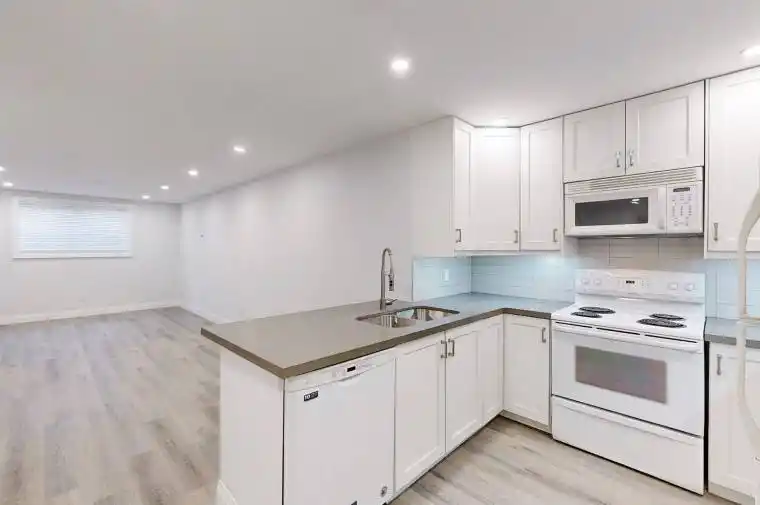 Bright & spacious 2 bedroom lower unit in quiet family oriented neighbourhood. Newly renovated from top to bottom! Featuring 9 ft ceilings, pot-lights, and a large picture window. This contemporary space has laminate flooring throughout for easy maintenance. The kitchen is fully equipped with pristine appliances, quartz counters, and ample storage. Large bedrooms with built-in closets and desirable split layout. Bonus exclusive use of side-yard patio extends your living space outdoors. Close to schools, parks, shopping, major highways and airport. Available anytime.