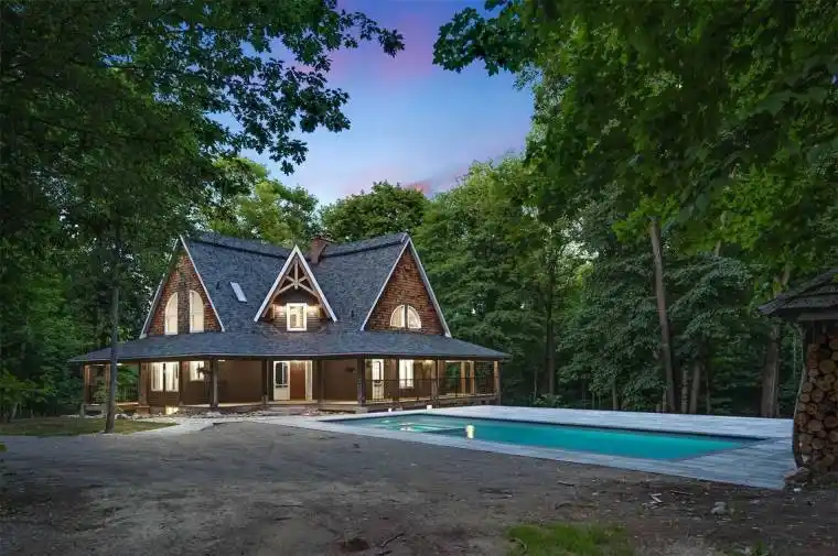 Welcome to this secluded custom Timberframe retreat, set on nearly 100 acres of pristine land surrounded by mature trees, farmland, and a tranquil pond. This architectural gem showcases soaring 28 ceilings, a dramatic floor-to-ceiling fireplace, and an open-concept layout filled with natural light. The main floor offers a spacious bedroom and mudroom with shower, while the loft-style primary suite boasts an 18 ceiling and skylights. A 1,300 sq. ft. wraparound deck extends the living space outdoors, leading to a true backyard oasis complete with a newer inground pool (2021) and hot tub.With 3,328 finished square feet, the fully finished walkout basement provides excellent in-law suite potential, featuring two additional bedrooms, a large recreation room, office, bathroom, and the option for a second kitchen. This property offers endless lifestyle and investment opportunities whether as a private family retreat, a short-term rental destination, or future development potential. Just minutes from Wasaga Beach and a short drive to Barrie and Collingwood, this is a rare chance to live in your own private paradise while securing an exceptional long-term investment.