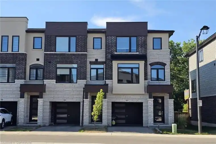 Modern Townhome in Prime Cambridge Location! Welcome to 290 Equestrian Way Unit #58 a stunning and spacious 3-bedroom, 2.5-bathroom townhome nestled in the highly sought-after River Mill community. This contemporary home features an open-concept layout, perfect for both everyday living and entertaining. Step into a bright main floor with large windows, luxury vinyl plank flooring, and a stylish modern kitchen with stainless steel appliances, stone countertops, and ample storage. The upper level has 3 generous bedrooms, including a primary suite with ensuite bath and walk-in closet. Located just minutes from Highway 401, schools, parks, trails, and all essential amenities, this home is ideal for commuters and families alike.