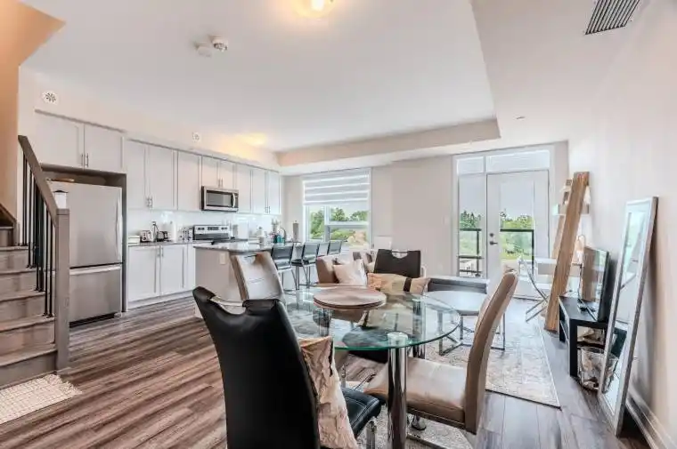 ** FULLY FURNISHED, INCLUDES 2 PARKING SPOTS ** Welcome to This Stunning, Fully Furnished 2-Bed 2-Bath Stacked Townhouse in a Prime Milton Location! Be The First to Live in This Brand New, Beautifully Furnished Home Featuring 9-ft Smooth Ceilings on The Main Floor, an Open-Concept Layout, and High-Quality Modern Finishes Throughout. The Spacious Kitchen Features Contemporary Finishes, Stainless Steel Appliances, And a Large Island Perfect For Entertaining. Both Bedrooms Are Generously Sized, With Ample Closet Space And Large Windows. Enjoy The Convenience of Ensuite Laundry, And Thoughtful Upgrades That Make This Home Truly Move-in Ready. Step Out Onto Your Oversized Private Terrace, Ideal For Relaxing, BBQs, or Outdoor Dining. This Home Also Includes 2 Dedicated Parking Spaces, Including The Opportunity For an Electric Vehicle Charging Station Parking Spot, a Rare And Valuable Feature. Located Close to Parks, Schools, Shopping, Transit, and Highways. Just Bring Your Suitcase And Move in!