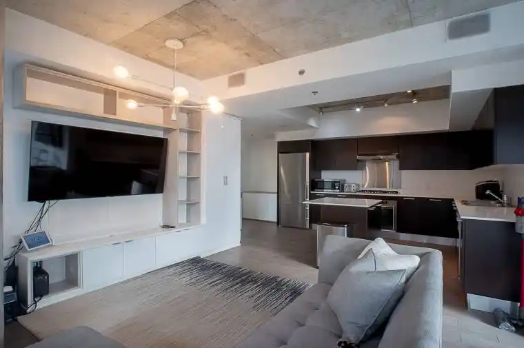Luxury 2-Bedroom + Den Condo with Custom Features at 375 King Street West. Experience upscale urban living in this fully furnished, all-inclusive condo in the heart of Toronto’s vibrant Entertainment District. Located at 375 King Street West, Suite 902 offers exceptional convenience with utilities and high-speed internet included just bring your suitcase! Key Features: – Bedrooms: 2 spacious bedrooms, plus a versatile den converted into a full third bedroom complete with a custom closet. – Murphy Bed Systems: Includes two innovative Murphy bed systems, one doubling as a desk and bed perfect for optimizing space and functionality. – Custom Storage: Tons of built-in custom storage solutions, including three upgraded closets, ensuring everything has its place. – Bathrooms: 2 bathrooms, including a newly renovated second bath with modern finishes. – Updated Interiors: Brand-new flooring throughout, freshly painted walls, and sleek design upgrades. – Outdoor Living: Enjoy the custom flooring on your private balcony ideal for relaxing or entertaining. Located steps away from world-class dining, shopping, entertainment, and public transit, this condo combines modern luxury with the ultimate convenience. Perfect for professionals or families looking for a turnkey rental. Don’t miss this opportunity for all-inclusive living in one of Toronto’s most sought-after neighborhoods!