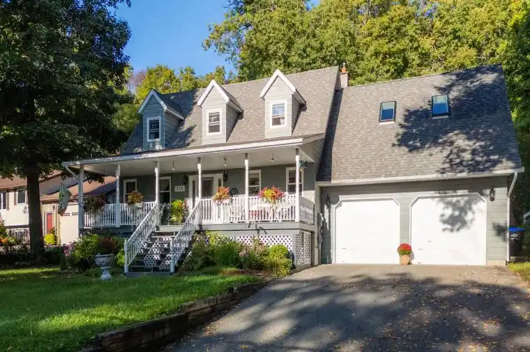 Welcome to 372 Lakewood, an exquisite family home spanning approximately 3,000 square feet, perfectly blending modern elegance with timeless charm, just steps from the serene shores of Midland Bay. This rural retreat offers breathtaking water views and a peaceful ambiance while remaining conveniently close to local amenities. Step inside to a bright and airy open-concept living space, bathed in natural light, ideal for cozy family moments or vibrant entertaining. Warm up on chilly evenings by the Jotul wood stove, creating a cozy ambiance for nights by the fire. The home features a recently replaced roof, a new air conditioning system, and a new furnace, ensuring comfort and reliability for years to come. An expansive loft with skylights, perfect for stargazing, serves as a versatile space for an oversized office or additional bedroom. The fully finished basement offers a multi-use area, ideal for a gym, yoga studio, or entertainment space. Outside, a private backyard oasis awaits, enveloped by mature oaks and maple trees that provide exceptional privacy and a lush, natural canopy. The expansive lot, dotted with skylights for nighttime star viewing, includes a beautiful patio and charming gazebo, perfect for tranquil evenings or hosting gatherings. Enjoy the luxury of a heated salt-water above-ground pool for relaxation or family fun. A private walking path leads to a secluded sand beach, offering exclusive access to Midland Bays tranquil shores. The front porch, with stunning bay vistas, invites you to unwind and soak in the waterfront beauty. A fully finished garage with high ceilings provides ample space for vehicles, storage, or a workshop. With a generous yard ideal for gardening, outdoor activities, or simply embracing natures calm, 372 Lakewood is a sanctuary of comfort, privacy, and scenic splendor.