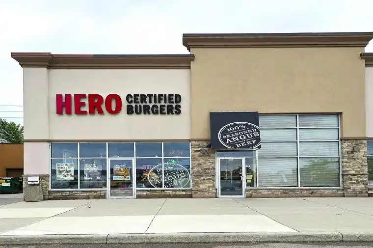 Hero Burger Franchise in a Busy Plaza with . Big Plaza with LONGOS, Best Buy, Chuck E Cheese. many Big Stores. Lots of traffic in the Plaza Location Location Location. Golden Opportunity for Hands On Owner. Same Location from 2013. 4 + 5 years lease remaining Turnkey Operation, Great Exposure, High Traffic Area and Visibility Fabulous Set Up of app 2000 sqft Ambience Galore, Franchise. Delicious Food, Relaxing Atmosphere, Excellent Service, Great Sales!!! Very Profitable and Busy location Low Rent. UNIT CAN BE SUB-DEVIDED BY THE NEW TENANT. SELLER WILL COMPLETE THE HERO RENOVATIOINS.
