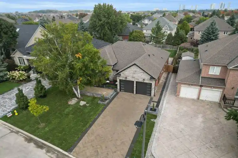 Completely reimagined luxury bungalow offering over 4,800 sq ft of refined living space on a premium landscaped lot in one of Woodbridges most desirable enclaves. No detail has been overlooked in this top-to-bottom transformation. The exterior showcases a natural stone façade with tiger stripe accents, 9 custom insulated garage doors, upgraded black gutters and fascia with LED pot lights, a new roof (2017), and oversized high-efficiency windows (2020). The grounds have been professionally landscaped w herringbone stone walkways, granite coping steps, mature trees, front and rear sprinkler system w Wi-Fi controls, night vision security cameras, uplighting, and a massive rear patio with matching stone design, speaker rough-ins, and EV-ready garage with secondary panel. Step inside to soaring ceilings, oversized porcelain foyer tile, a custom white oak staircase with glass railing, Astoria walnut engineered hardwood, solid wood/glass interior doors, oversized baseboards, and over 100 LED pot lights. Savant smart automation connects lighting, blinds, and speakers throughout. The brand new Italian-imported Scavolini kitchen features quartz counters, waterfall island, fluted glass-panel cabinetry, JenAir built-in appliances, LED undercabinet lighting, dining room with custom built-in buffet and 65 smart TV. The family room boasts a 72 three-sided porcelain fireplace, home theatre wiring, and oak detailing, while the office offers 11 vaulted ceilings, built-ins, and power blinds. The primary suite includes expanded windows, stone fireplace, automated blinds, integrated speakers, and a spa-inspired ensuite with custom vanity, fluted tub, oversized tile, and LED accents. The fully finished lower level offers an entertainers dream with a projector, Dolby 7.1 surround sound, modern dry bar, real brick feature walls, new powder room, storage, and a 2-bedroom in-law suite with separate entrance, brand new kitchen, bath, and laundry central vac, Nest system, 200AMP service,