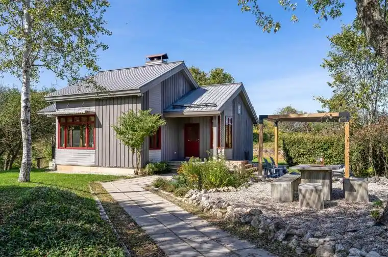 Escape to over 50 acres of peace and privacy with this thoughtfully designed 3-bedroom, 2-bathroom home in the Municipality of Chatsworth. Designed and built by an architect who carefully studied the property wind patterns prior to building. The home’s layout and placement of glazing are perfectly positioned to invite natural breezes and sunlight throughout the day, creating an atmosphere that is both efficient and serene. At the heart of the home, a soaring great room with a wood-burning fireplace provides a warm and inviting gathering space for family and friends. The open design is complemented by discreet floor-to-ceiling storage, maintaining a clean, uncluttered aesthetic. A main-floor bedroom and full bath offer flexibility, while two additional bedrooms and a second bathroom are located on the lower level. Just off the main floor bedroom, a screened-in porch invites you to relax while immersed in the sights and sounds of nature. Outside, the woodland and meadows are laced with 3.5 km of trails to explore offering endless opportunities for walking, snowshoeing, hiking, or simply enjoying the quiet beauty of nature. The long winding driveway ensures exceptional privacy as it leads you to the residence. Behind the house, a well-fenced vegetable garden provides the perfect space to grow your own produce. A detached outbuilding, designed to echo the homes style, offers parking for two vehicles, a workshop, and firewood storage. Adding to the property sustainability, solar panels on the roof take full advantage of the unobstructed sun, generating income through a Microfit contract with Hydro. This is a rare opportunity to own an architect-designed retreat where comfort, sustainability, and natural beauty come together in perfect harmony.