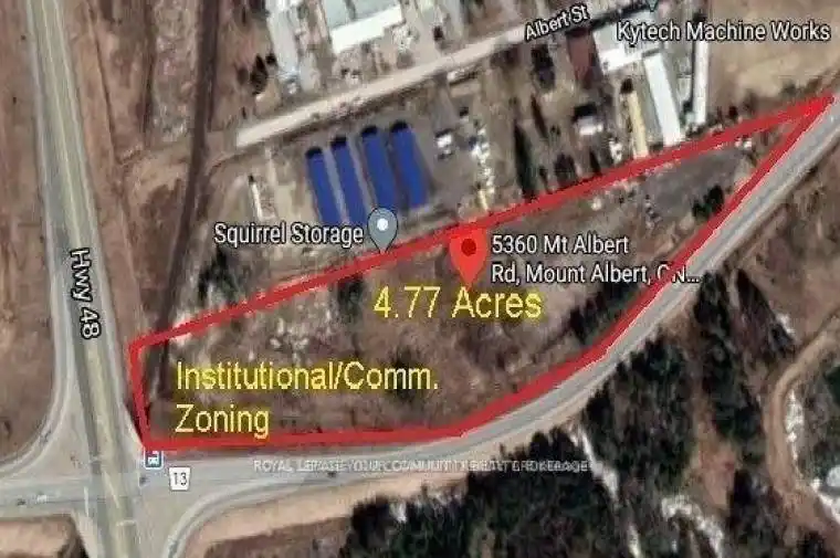 4.77 Acres zoned C4ORM (95) Commercial Located North East corner of Highway 48& Mount Albert side road. PERMITTED USES INCLUDE: Place of worship, medical centre, garden centre, child care centre, business office, animal clinic & daycare, retail store.(SEE ATTACHED USES) Survey and Soil test available.