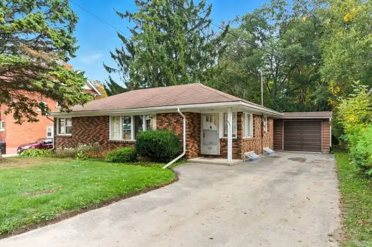 Charming Brick Bungalow in the Heart of Midland. This solid all-brick bungalow offers a warm and welcoming place to call home, perfect for first-time buyers, downsizers, or retirees. Featuring 2 comfortable bedrooms and a spacious layout, the home includes a generous living room, a dedicated dining area, and a beautifully updated kitchen with new cabinetry, counters, and flooring, as well as newer appliances. The recently renovated 4-piece bathroom adds a fresh, modern touch, and nearly all windows have been replaced in 2024, with another on order for the foyer. The front window was updated in 2014, providing a bright and cheerful atmosphere. Step outside to enjoy a partially fenced, private backyard with convenient access from the back entrance ideal for relaxing or entertaining. A detached 12′ x 24′ garage adds practical storage or workshop space. Located just a short walk from downtown Midland, you’ll have easy access to local shops, restaurants, cafes, and year-round community events. Plus, Little Lake Park is just behind the property, offering green space and recreational opportunities right in your backyard. Additional features include: Forced air gas furnace (2008) Central air conditioning (2006) Hot water tank (2022) 200 amp breaker electrical service. Laundry located in the unfinished basement. Shingles replaced in 2009. A comfortable and well-maintained home in a prime location this property is move-in ready and full of potential. Wood fireplace needs a chimney and possibly something else. Some photos are virtually staged.