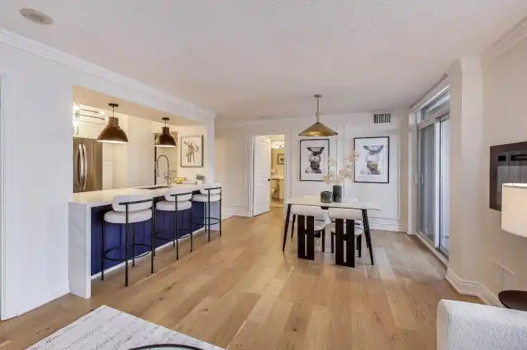 Modern Comfort Meets Prime Location 2 Bed, 2 Bath Condo Triomphe 1 by TRIDEL. This is no ordinary suite! Welcome to this SPACIOUS 915 sqft corner unit offering a perfect blend of style, functionality, and unbeatable location. Building is well managed by Del Property Management. RENOVATED in 2022, this 2-bedroom, 2-bathroom suite features wide plank engineered hardwood floors, new stainless steel appliances, and a sleek electric wall-mounted fireplace that adds both warmth and flair to the open-concept living space. The kitchen shines with modern upgrades, while the bathrooms await your personal touch offering the opportunity to customize and add value. Enjoy sunlit living areas and a smart split-bedroom layout that maximizes privacy and function. Located just minutes from the subway, right along the TTC bus route. Boasting a Walk Score of 95, putting daily essentials, shopping, dining, and entertainment at your doorstep. Building amenities include: 24-hour security Gym & party room Guest suites Ample visitor parking and tennis courts. All utilities included in the maintenance fees except cable and internet for added convenience and peace of mind. Don’t miss your chance to own in one of the most walkable and connected neighborhoods in the city. Priced well at approx $819.67/sqft. Includes 1 owned parking space and 1 owned locker.