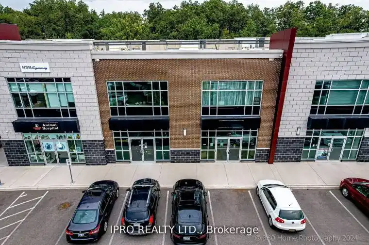 Nestled in the Prestigious Rebecca Street Address along the QEW corridor in Oakville, this property is Part of a Vibrant Mixed-Use Development Featuring Four Buildings that collectively House a diverse array of Businesses. Serving as a central hub for the Local Community, this Location offers an Abundance of Amenities and Outstanding Transportation options. The Fully finished, grade-level open concept unit boasts impressive 12-foot ceilings, independent heating and A/C, and an ensuite 2-piece bathroom, ensuring a comfortable environment for any business. With ample parking available, this unit is ideal for a variety of operations. The front 2/3 of the unit is currently tenanted until July 2026, while the back 4 features its own private entrance and flexible tenant arrangements, both of whom have expressed interest in renewing. This unique opportunity allows the owner to run their own business while benefiting from rental income. The unit spans 1,208 square feet with additional access to a 416 square foot second-floor meeting room and lunch area. Modifications are possible to suit specific needs, and security cameras are already installed in the back office for added peace of mind.