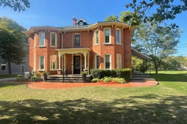 Downtown Marmora – Victorian Home with Endless Potential! Outstanding 5 bed, 4 bath red brick Victorian with over 4,000 sq ft of living space. Features include original hardwood floors, central hall plan, licensed kitchen with granite island & new LG appliances (2024), great room with brick fireplace, and main floor laundry/pantry. Enjoy an attached double garage with inside entry, detached carport, and parking for 6+. Upstairs offers spacious bedrooms including a master with ensuite, plus chairlift for accessibility. Zoned main street commercial – perfect for a B&B, offices, retail space, or professional home business. Backyard overlooks Memorial Park and Crowe River, with walking trails and splash pad. Commercial fire system (2018), large deck for entertaining and unbeatable downtown location. Heritage charm meets modern versatility – don’t miss this one! Seller is a registered real estate agent.