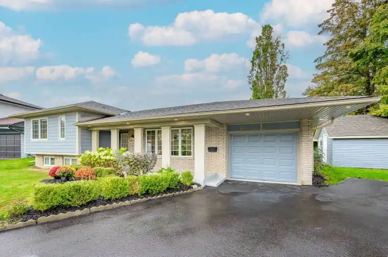 Welcome to 55 Oriole Court. A Beautiful Side-Split Bungalow on a Massive Pie-Shaped Lot! Tucked away on a quiet court in a peaceful, family-friendly neighborhood, this spacious 3 + 1 bedroom, 2 bathroom side-split has been lovingly maintained and updated throughout. Step inside to find a bright and inviting main floor with fresh paint, newer trim, and windows & doors replaced just 6 years ago. The finished lower level boasts large above-grade windows that fill the space with natural light, making it perfect for a family room, guest suite, or home office. The backyard is truly a retreat featuring a cement patio with brick inlay, a relaxing hot tub under a pergola, and a finished 12×12 powered shed ideal as a workshop, studio, or backyard office. The pie-shaped property provides plenty of room for kids, pets, and entertaining. Other highlights include: Newer upgrades for peace of mind Attached garage with parking for multiple vehicles Quiet and safe neighborhood surrounded by mature trees Walking distance to schools, community center, parks, shopping, and all amenities. This home combines comfort, convenience, and outdoor living space in one incredible package. Don’t miss your chance to own this gem in a sought-after location!