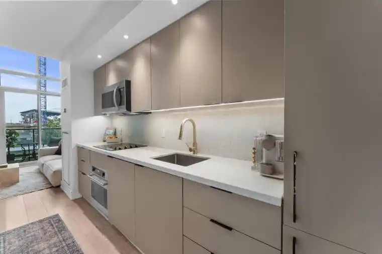 Highly coveted Liberty Market Lofts. Soaring 17-ft ceilings, floor-to-ceiling windows, and bright south-facing views create a home full of character and pride. This premier layout showcases modern finishes, new kitchen countertop and backsplash, integrated appliances, generous closet space, and a spacious balcony. Building amenities include a 24-hour concierge, lobby art gallery, gym, party room, guest suites, and a pet-washing spa.