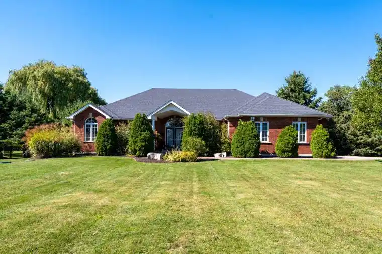 Set on 2.19 private acres in east Brantford’s most coveted rural pocket, this all-brick, 2,199sqft. ranch (1999) with 9ft ceilings blends timeless architecture with fresh, upscale finishes an exclusive retreat designed for effortless living and unforgettable entertaining. Inside, an airy open-concept great room & chefs kitchen is anchored by an oversized island with plenty of seating the ultimate gathering spot for morning coffees or weekend soirées. A formal dining room (currently a stylish home office) adds flexibility, while the main living area showcases wide-plank -inch Invincible laminate flooring for a clean, modern look. The refreshed kitchen pairs classic cabinetry with new granite countertops for a seamless blend of charm and convenience. 3 well sized bedrooms, updated 4pc main bath with shiplap styling. The primary bedroom features a walk-in closet and a luxury 4-piece ensuite feels truly spa-worthy, featuring a large vanity, spacious shower, and a stand-alone seated tub your daily wind-down ritual, perfected. Downstairs, the finished bright lower level brings the party: a fireplace-warmed rec room, impressive bar, 2-pc bath (w/shower rough-in), guest/teen bedroom, oversized windows and generous storage. Outdoors, your personal resort awaits. A new composite deck steps down to a hot tub, sun-splashed above-ground pool (2023), and a beach volleyball court the ultimate sanctuary-meets-playground, 2 firepits,. With easy access to the Grand River, you can launch into nature or simply enjoy sunset strolls rain or shine. Rounding it out: a well-sized 2-car 23×22 heated garage/workshop with electric car charger and multi-vehicle driveway (parking for 5+). Mulch in landscaping is a lifelong rubber mulch. All of this just 5 minutes to Hwy 403with Brantford, Paris, Hamilton, and every daily essential only moments away. This is exclusive country living with city convenience a polished, move-in-ready estate made for those who entertain well and live even better.