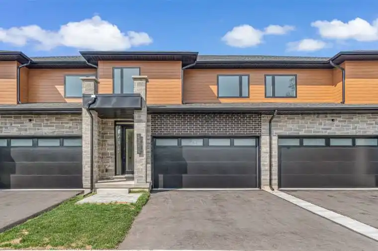 Brand-new executive town home never lived in! This stunning 1,747 sq. ft. home is situated in an exclusive enclave of just nine units, offering privacy and modern luxury. Its sleek West Coast-inspired exterior features a stylish blend of stone, brick, and aluminum faux wood. Enjoy the convenience of a double-car garage plus space for two additional vehicles in the driveway. Inside, 9-foot ceilings and engineered hardwood floors enhance the open-concept main floor, bathed in natural light from large windows and sliding glass doors leading to a private, fenced backyard perfect for entertaining. The designer kitchen is a chefs dream, boasting white shaker-style cabinets with extended uppers, quartz countertops, a stylish backsplash, stainless steel appliances, a large breakfast bar, and a separate pantry. Ideally located just minutes from the QEW, 407, and Burlington GO Station, with shopping, schools, parks, and golf courses nearby. A short drive to Lake Ontario adds to its appeal. Perfect for down sizers, busy executives, or families, this home offers low-maintenance living with a $269.10/month condo fee covering common area upkeep only, including grass cutting and street snow removal. Don’t miss this rare opportunity schedule your viewing today! Tarion Warranty!
