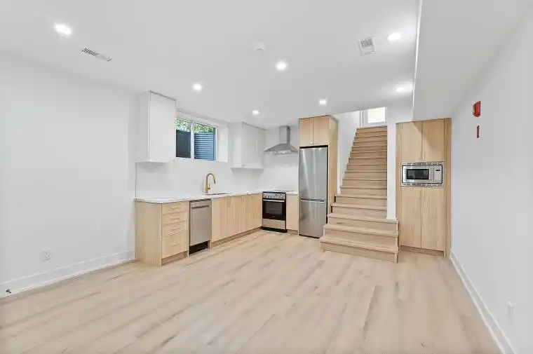 Welcome to 127 Northcote, a just-renovated full-floor Lower-level apartment with 8 FT ceilings and massive windows!. Steps from the vibrant Ossington strip, Trinity Bellwoods Park, and Queen West. Stripped back to the brick and rebuilt with todays lifestyle in mind. The designer kitchen features full-size stainless steel appliances including a dishwasher, strong exhaust fan, and ample storage. The primary bedroom offers a custom walk-in closet and ensuite bath, complemented by a second full bedroom and an additional full bathroom with designer finishes. Central air conditioning, in-suite large washer and dryer, and a private entrance add everyday convenience. A perfect blend of modern comfort and historic character, just steps from Torontos best dining, shopping, and green space. *Private entrance, tenant pays sub-metered utilities, floor-plan on last photo.