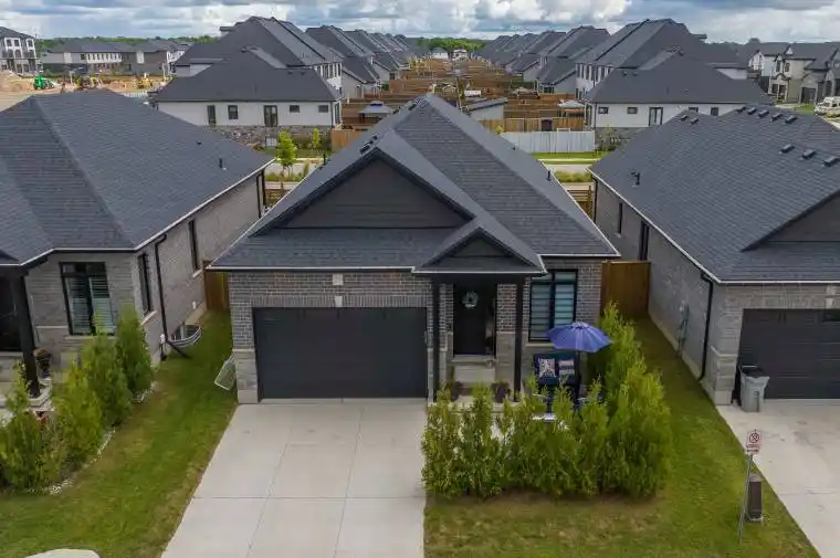 Welcome to this stunning fully finished bungalow offering over 2,600 sq ft of beautifully designed living space. Built in 2022, this home combines modern elegance with functional comfort perfect for families, downsizers, or anyone seeking stylish, single-level living with extra room to spare. 2+2 spacious bedrooms and 3 full bathrooms. Bright, open-concept main floor with 9-foot ceilings, Gourmet kitchen with quartz countertops and premium finishes, and engineered hardwood flooring throughout main living areas. Cozy linear fireplace – a perfect focal point for the living room. Double car garage with concrete driveway. Durable and timeless stone & brick exterior for lasting curb appeal. Downstairs, you’ll find a fully finished lower level with two additional bedrooms, a full bath, and a large rec room – ideal for entertaining, hosting guests, or creating a home office or gym. Kilworth is a growing community located just west of London, offering residents a blend of peaceful country living with close proximity to urban conveniences and outdoor recreation. Don’t miss your chance to own this move-in-ready gem!
