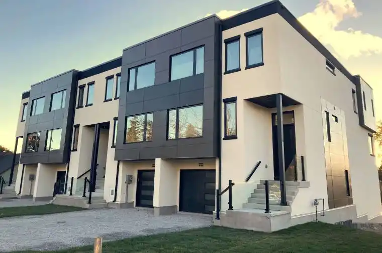 Truly stunning and one-of-a-kind! Brand New END-unit! Welcome to Valley Farm Towns: Meticulously designed by Dwellus Homes. For the discerning renters. Luxe finishes throughout typically only found in high-end Toronto areas. Chic, Regal and Royal and inspired by French architecture. Rarely found oversized ~18’x30′ kitchen/family room. Entertainer’s dream! Amazing location. Less than 5 mins drive to 401! Incredibly spacious 2,756 sqft – feels like detached home! Custom build finishes throughout: Stunning staircase with glass railings. Custom kitchen/bathroom cabinetry. Gorgeous & regal kitchen with 36″ stove, decorative canopy with hood-fan, pull-out spice rack, pull-out garbage, 2 pantries, quartz backsplash (fully upgraded). Feature wall in family room with 3-sided fireplace & decor niches (with pots). Total of 3 closets in primary! Spa-like primary ensuite with heated floors, book-match ceramic slabs in shower, LED-backlit mirrors, designer vanity with built-in LEDs. 6.5″ engineered hardwood on all levels. 9FT smooth ceilings on main/2nd. Lower level has 10FT ceiling (above grade) and roughed-in for wet bar & bathroom!! 4BR plan is also available as an upgrade on Lower Level including Bedroom, 3-piece bath & wet bar. Two skylights!! East/West exposure. Gorgeous treed views from almost every window! Super bright with sun exposure all day. Over 60 pot lights!! Kid’s bedrooms both have walk-in closets! Herringbone tiles in entrance/powder room. Walk-in front entrance closet!! 30ft deep backyard. Large 15’x15′ composite deck w/ glass railings. Custom closet organizers in primary walk-in. Designer wallpaper in powder room Wide 1.5 garage! Amazing location. A few minutes drive to 401. Short stroll to Mall, Cineplex, Jack Astors & Moxies. One-of-a kind build! total wow! Come see for yourself! Photos of model home. To see model home book #1956