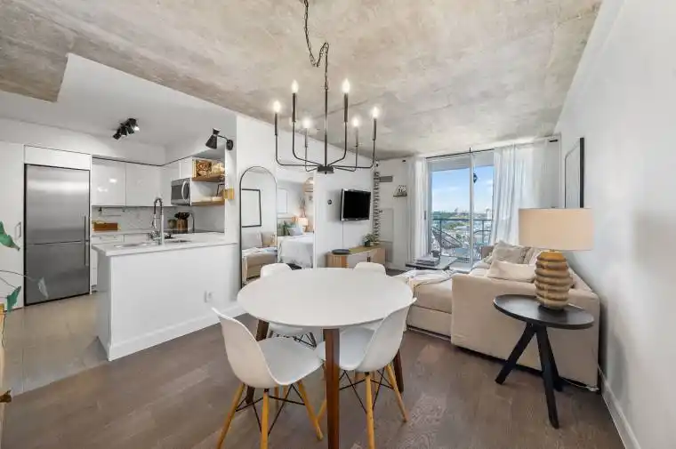 Welcome to 1369 Bloor St W – Located in the Heart of Bloor West Village! Featuring an updated 1-bedroom condo with East-facing balcony with views of Toronto skyline and CN tower, large windows, and a highly functional layout with a generous sized kitchen and separate dining area – ideal for both daily living and entertaining. The chef-inspired kitchen includes quartz countertops, stainless steel appliances, herringbone backsplash, under-cabinet lighting, floating walnut shelves, and modern fixtures. Enjoy engineered hardwood floors and smooth concrete ceilings throughout for a sleek, contemporary feel. Set in a building with excellent amenities, including an outdoor pool – perfect for cooling off in the summer months or entertaining! Plus a gym, party room, and security system. Located just steps from the Sterling Road arts and innovation district – home to the Museum of Contemporary Art (MOCA), the Drake Commissary, Henderson Brewery, and a growing mix of creative studios, tech offices, and cafes. The surrounding Junction Triangle is one of Toronto’s fastest-evolving neighbourhoods, combining industrial charm with vibrant community energy. Nature lovers and active commuters will appreciate being close to the West Toronto Rail path, a multi-use trail perfect for walking, jogging, and cycling, offering a peaceful, car-free connection through the city surrounded by trees, murals, and green space. Additionally, Transit couldn’t be easier with the Bloor subway line and UP Express just minutes away – downtown in 10 minutes, Pearson Airport in 20. A perfect opportunity to live in style, with space, convenience, and culture right at your doorstep.