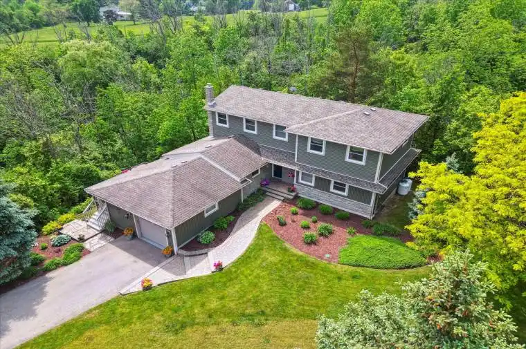 Welcome to Nature at Its Best! This beautifully set home on Old Waterdown Road offers a perfect blend of tranquility and charm. Breathtaking panoramic views from every vantage point your private retreat in nature awaits! A rare gem nestled on 2 acres, this customized 2-storey home offers 4+2 bedrooms and 3.5 baths in pristine move-in condition. The perfect blend of rural peace and modern convenience, just minutes from all the amenities for todays lifestyle. Seamless connectivity with easy access to Aldershot, Waterdown, GO Train and major highway routes. Commuting has never been more convenient! A unique layout with main floor bedroom and ensuite, great room hall & dining room concept. Separate living room with fireplace; eat in kitchen with granite counters and with access to a screened sun porch. The upper level features three spacious bedrooms, including a 4-piece main bath with direct access from one of the rooms. The lower level is designed for both comfort and functionality, featuring a spacious recreation room with a fireplace and a grade-level walkout, two bedrooms, 4-piece bath, and a convenient laundry room. This home is thoughtfully designed with expansive windows, inviting breathtaking views of nature and filling every space with abundant natural light. With parking for six cars plus a single-car garage, there’s plenty of room for family and guests. A private, tree-lined country retreat paired with an impeccably maintained, custom-built home! Enjoy serenity and space while staying just minutes from every modern convenience.