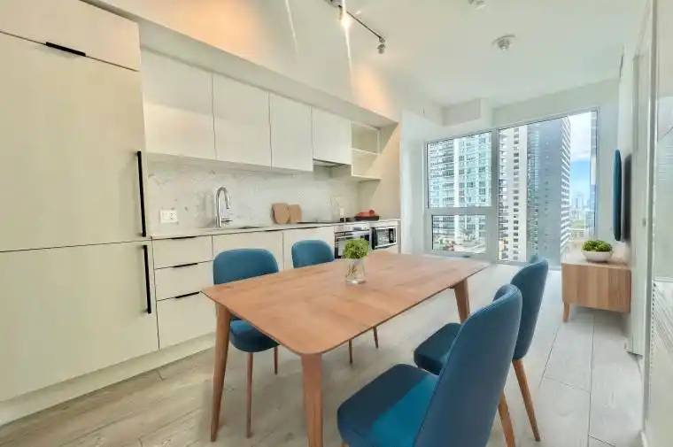 New and stunning 1-bedroom suite in the heart of downtown Toronto. This bright unit offers 9 ceilings, floor-to-ceiling windows with unobstructed views, and an abundance of natural light. Perfectly located with easy access to the TTC, just steps to shops, restaurants, hospitals, and Toronto Metropolitan University (formerly Ryerson). Quick access to the DVP and Gardiner Expressway. The suite features high-end built-in appliances, spacious closets, and an ensuite washer & dryer. Includes an underground locker. Enjoy world-class amenities including a fully equipped fitness centre, yoga studio, shared workspaces, outdoor terrace, and more.