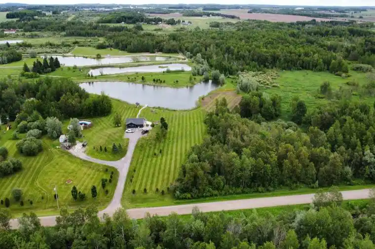 Escape to serenity your dream retreat (8.56 Acres) on the edge of Amaranth, just minutes from Shelburne. This unique 3 Bedroom Bungalow offers peace, privacy, and plenty of room to entertain. The open-concept layout offers a seamless flow into the living area, highlighted by a cozy electric fireplace and elegant herringbone-patterned porcelain tiles. Main floor features a custom kitchen with granite countertops, soft-close cabinetry, and premium appliances. The generous dining area showcases panoramic views eastern exposure overlooking a peaceful pond and southern views of your private woodlot. From here, walk out onto the spacious wraparound deck, ideal for morning coffee or hosting evening gatherings. Make the most of summer with a heated above-ground pool and its own expansive, enclosed deck perfect for outdoor entertaining.The fully finished walkout basement is a true retreat, boasting rustic barn board features, a wet bar, pellet stove, 3-piece bath, and a flexible family room that could easily be converted into an extra bedroom or home office. Unwind in the 3-season sunroom with a built-in hot tuba perfect space to relax, enjoy games,and soak in the peaceful setting.With stunning views of your own pond and shoreline, this property offers the best of both worlds: an entertainers haven and a quiet countryside escape. You can canoe, kayak, or fish at your leisure right from your backyard.The property comes with a 1-acre tree farm where the owner has planted over 500 young seedlings, offering both beauty and future growth potential.