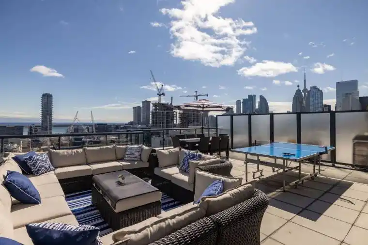 Welcome to the 400 Adelaide penthouse collection, this stunning condo that feels more like a home, with 9 foot ceilings featuring crown moulding and a lavish 700 sqft. Outdoor Terrace! Discover the allure of Ivory On Adelaide, Old Town Toronto’s hidden gem! This stunning penthouse boasts over 2,100 square feet of luxurious interior and exterior space, featuring an exclusive, massive south-facing terrace and two additional spacious balconies that wrap around the property. Bask in the sunlight that floods your beautiful eat-in kitchen, complete with sleek quartz countertops, abundant storage, and stainless steel appliances all over looking a large living and dining area with breathtaking views of the lake. The extraordinary primary bedroom is a true retreat, featuring a walk-in closet, access to a private balcony, and a lavish ensuite bathroom equipped with double sinks, heated floors, a separate jacuzzi tub and shower perfect for unwinding after a long day! The second and third bedrooms are generously sized, ideal for a queen bed, a large office, or a cozy nursery, and each boasts walkouts to the balcony and double closets. An additional 3-piece bathroom conveniently located off the hallway adds to the home’s functionality.This remarkable property also includes a prime parking spot, an oversized locker, and two bike storage spaces. With low maintenance fees covering water, this penthouse is not just a home; it’s a lifestyle waiting to be embraced! Freshly painted, just waiting for you to move in. Walking Distance To Restaurants, TTC, Scotiabank Arena, Union Station, Financial District, Distillery District, St. Lawrence Market, East End Film Studios. Prime location to access major highways DVP & Gardiner. Soon to be new Ontario Line.