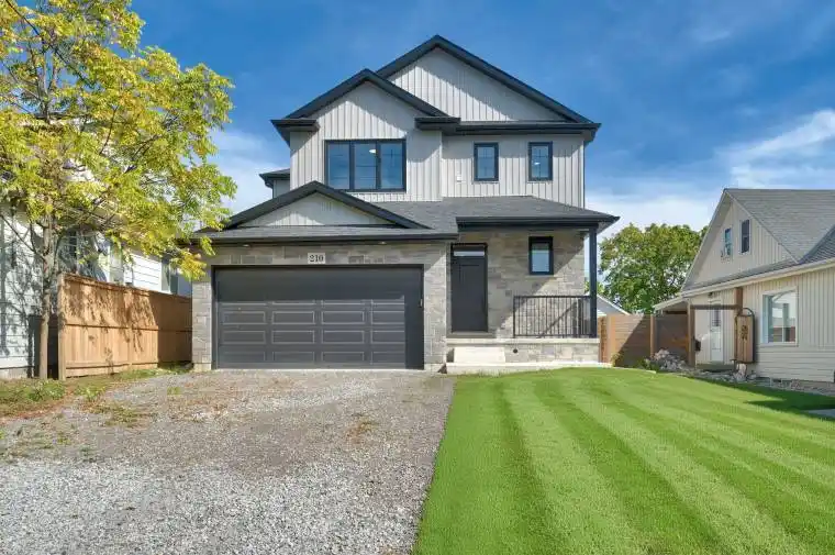 Welcome to 210 Morton Street – a modern 3+1 bedroom, 3.5 bathroom home designed with style, function, and versatility in mind. From the curb, the mix of stone and vinyl facades, covered front porch, and double-car garage set the tone for what’s inside. Step into the open-concept main floor where an oak staircase makes a striking first impression. Upgraded engineered hardwood runs throughout, tying together the dining and great room spaces with the high-end custom kitchen. Here you’ll find quartz countertops, a separate island, and plenty of room to cook, entertain, and gather. Upstairs, the primary suite is a retreat of its own with a walk-in closet and spa-like ensuite featuring a glass and tile shower, freestanding tub, and double vanity. Two additional bedrooms share an upgraded bathroom, while an upper-level laundry adds everyday convenience. The lower level extends the home’s appeal with a self-contained in-law suite. Complete with its own entry, kitchenette, laundry, and a separate side door, it’s a great setup for multi-generational living or generating extra income. Less than 2 years old, this home is truly move-in ready. With low-maintenance landscaping and a central Thorold location, you’ll have quick access to St. Catharines, Niagara Falls, and Welland. Whether you’re looking to upsize, accommodate extended family, or ease your mortgage with a rental option, 210 Morton Street delivers it all with modern finishes, smart design, and a flexible layout.
