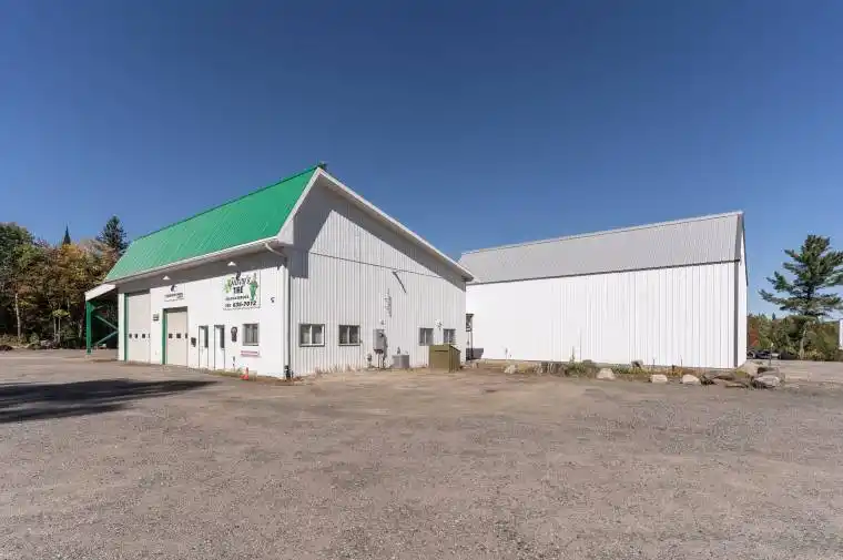 What a great opportunity to bring your business idea here . This amazing package includes a 3.5 acre lot with very quick highway access, great visibility and offers enough parking for dozens of large trucks , boats etc. The buildings are less than 10 years old and look like new ! Service building was previously used for a Tire business which allowed large trucks / transports to pull in for service. This service building features a large open reception area , kitchen with employee washrooms, handicapped washroom and a mezzanine storage area. This building also features a rear door that gives easy access to the secondary metal clad , steel storage building. This property also features a dry hydrant with 2 20,000 reservoir tanks for fire protection. The property also has rear access behind to a cleared area for even more storage space and is not visible from the road. So many different things could be done here with Commercial General zoning. If you know Commercial lot prices + new construction costs of 4800 square feet, you will appreciate the opportunity to turn the key and start up your business in this solid build. This is a land and building ( s ) sale only.