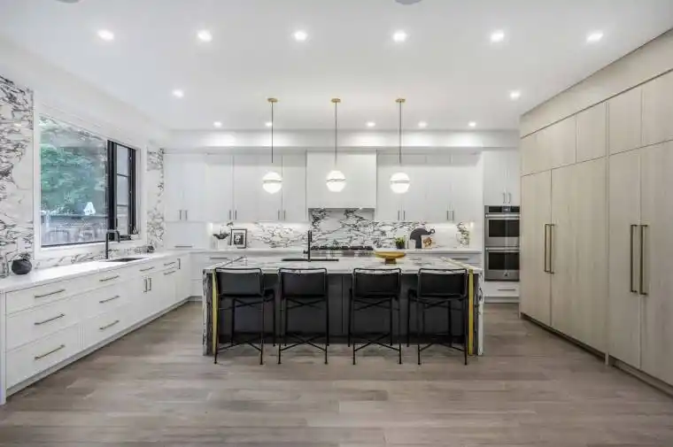 Welcome to 8 Manor Haven Road A Custom Home Across from the Park!This beautifully designed 4+1 bedroom, 6-bathroom home offers over 3500 sqft luxurious living in a prime family-friendly location. Built by Embe Constructions and designed by Shaun Lipsey, it features premium finishes and a thoughtful, functional layout throughout. The main floor features 10ft ceilings, pre-engineered hardwood floors, pot lights, and floor-to-ceiling inline windows that flood the home with natural light. Spacious principal rooms include a formal living room and a large separate dining room, ideal for entertaining. The chefs kitchen by California Kitchens is a true showstopper, equipped with top-of-the-line JennAir appliances, including a side-by-side fridge and freezer, two wall ovens, and a massive 10-ft island with ample seating. A dedicated prep space with drink fridge, paired with a huge walk-in pantry offer exceptional storage and prep space. The kitchen is open to the rear of the home, while remaining separate from the dining and living rooms. The family room features a cozy fireplace framed by a stunning floor-to-ceiling granite feature wall, creating a dramatic and welcoming focal point.Upstairs, you’ll find four spacious bedrooms and three full bathrooms, including a primary retreat with a walk-in closet by Closets by Design and a spa-like ensuite with heated floors.The finished basement offers 1570 sqft includes a fifth bedroom, full bathroom, and a large open-concept rec space ideal for a home office, gym, or guest suite. A built-in bar adds flexibility for entertaining. Additional highlights include a heated mudroom, built-in Sonos surround sound, gas BBQ hookup, and a large private backyard. Located directly across from a park, this home delivers top-tier quality, comfort, and modern family living