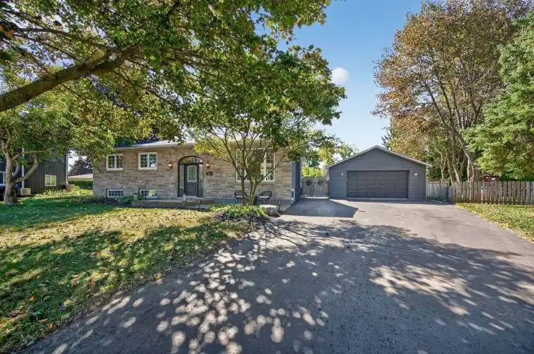 Welcome To Your Dream Oasis In A Quiet Hamlet. Beautifully Updated, Move-In-Ready Home With Spacious, Light-Filled Rooms And Resort-Style Outdoor Living Featuring A Heated Inground Saltwater Pool. The Bright, Open-Concept Main Floor Boasts A Large Kitchen With Stainless-Steel Appliances, Pantry, Eat-In Area And A Cozy Coffee Nook. Relax In The Year-Round Sunroom, Accented With Shiplap And Oversized Windows, Overlooking The Massive Pie-Shaped Lot And Private Backyard.This Home Offers Three Main-Level Bedrooms Plus A Fully Finished Basement With A Recreation Room, Dry Bar, Gas Fireplace And An Additional BedroomPerfect For Guests Or A Home Office. The Outdoor Entertaining Area Includes A Covered Pool Cabana, Expansive Decking, Fire Pit & A Tranquil Pond. Serve Drinks Through The Bar Window To Guests By The Pool From The Detached Insulated And Heated Garage Also Ideal For Car Enthusiasts Or Storing All The Toys. An Oversized Driveway Accommodates 10+ Vehicles, Perfect For Large Gatherings. Conveniently Located Steps From Grocery Stores And Restaurants And A Short Drive To Costco, Park Place, The GO Train And Highway 400. Combining Thoughtful Updates, Versatile Living Areas And Exceptional Outdoor Amenities. Enjoy This Home For Many Years To Come!! Upgrades: Pool Converted To Salt ’23, Insulated Detached Garage w/Automatic Garage Door Openers, Fresh Paint Throughout, Stainless Steel Appliances, Newer Windows & Roof, Insulated Sunroom w/Shiplap & Large Windows, Gas Fireplace, Refinished Stone-Exterior, Driveway Sealed ’25, Oversized Pie-Shaped Lot.