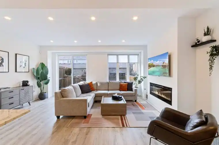 This beautifully crafted two-storey townhome by Branthaven Homes boasts a striking brick and stone exterior that exudes curb appeal. Step inside to discover refined finishes and thoughtfully designed living spaces, featuring soaring 9-foot ceilings and stylish laminate and ceramic flooring throughout. The modern kitchen is equipped with granite countertops and stainless-steel appliances, perfect for both everyday living and entertaining. Upstairs, youll find three generously sized bedrooms, including a primary suite with a walk-in closet and a private ensuite. A spacious laundry room and an additional full bathroom add to the home’s convenience. Ideally located on Stoney Creek Mountain, this home sits across from the scenic 192-acre Eramosa Karst Conservation Area and is just minutes from the Red Hill Valley Parkway. It’s also steps away from Bishop Ryan Catholic Secondary School. This exceptional home won’t last long.