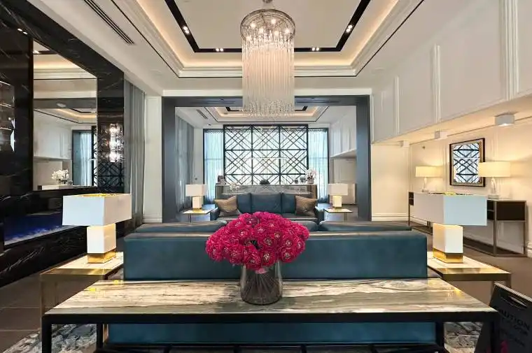 Welcome to this beautifully designed north-facing suite offering approximately 1,065 SF of modern living space in a prestigious building with full amenities. The open-concept layout is anchored by a chef-inspired kitchen featuring Caesarstone counters, a spacious island, custom cabinetry, and premium appliances. The primary suite includes a sleek 3-piece ensuite and an oversized walk-in closet. A second spacious bedroom and a full main bath with a soaker tub complete the home. Additional highlights include a versatile den, custom window coverings and a private balcony.