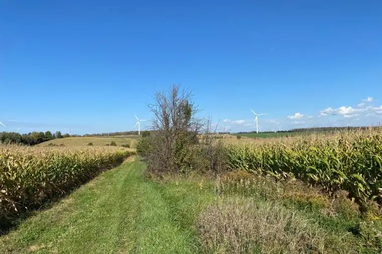 Approximately 94 agricultural acres for sale in Bruce County west of Highway 21, between Tiverton and Port Elgin that consists of approximately 65 acres cropland (believed to be Elderslie Silty Clay loam but buyer will need to verify) , approximately 25 acres mixed hardwood bush and approximately 4 acres Environmentally Protected (EP) zoning along 2 small creeks that cross the property. Sellers wish to sell to a buyer who will qualify for a surplus farm dwelling severance. Upon an accepted Agreement of Purchase and Sale with the severance as a condition, the sellers will commence the severance application to allow the home, small workshop and approximately 3 acres (not part of the approximately 94 acres listed) to be retained by the Sellers. This is not only an acreage of cropland and bush but the property still has history of the original farm. There is an easy central access laneway, from the concession to the back of the farm that crosses the 2 creeks and passes by the original home’s location where the partial barn foundation remains with a healthy grove of Pine trees and possibly an old dug well near the foundation. The current home to be severed is located on the north west corner of this farm. Excellent opportunity for a buyer or buyers who are looking to diversify their operations by adding to their crop acreage and enjoying a bush for wood management or recreational enjoyment. Crop rotation of soybeans and corn has been tenant managed. Possession will be determined when details of severance is available and buyers, sellers and tenant have determined an arrangement for the crops. Phased-in assessment information (2025) includes the entire farm as the listed property has not been assessed separately. There are no windmills on the listed property. (windmills in photos are on near-by properties).Sellers will consider selling land and home at a price to be determined, as long as sellers may continue to live in the home for as long as they wish at free rent.